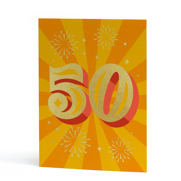 50th Birthday Gold Foil Number Card - Illustrated by Jess Miller for Ricicle Cards Celebrate one of those big birthday milestones with this gold fo...