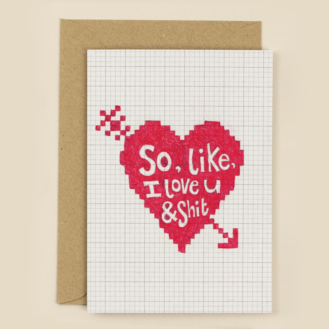 So, Like, I Love You and Shit Greeting Card - illustrated by Claire Senior