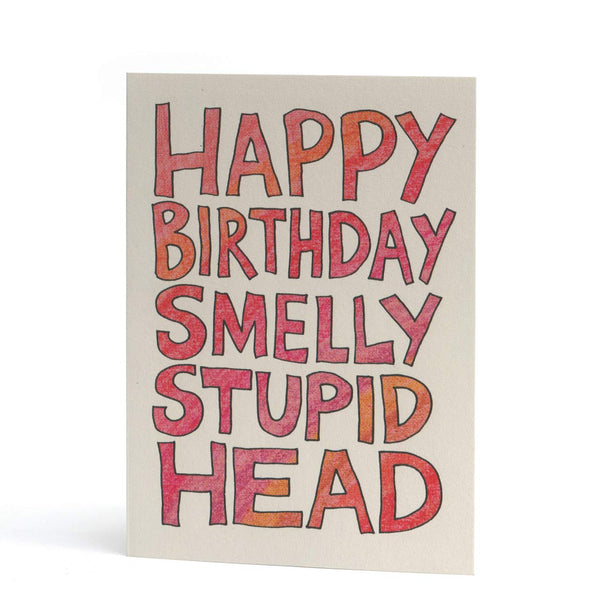 Smelly Stupid Head Birthday Card - illustrated by Claire Senior I love classy birthday cards. I also love very silly, childish birthday cards. This...