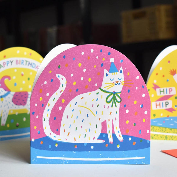 Party Cat Snow Globe Card - illustrated by The Printed Peanut This delightful die-cut card is sure to appeal to cat-lovers and snow globe aficionad...