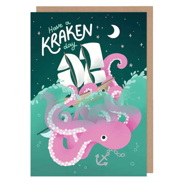 Have A Kraken Day Octopus Card - illustrated by Hopscotch Paper Co. Have a Kraken day! So says the text on this card as a delightful pink Octopus w...