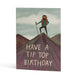 Have a tip top birthday - so proclaims this hiker atop a pretty tippy toppy mountain. Send this Outdoorsy card to the avid hill walker or hiker in your life!