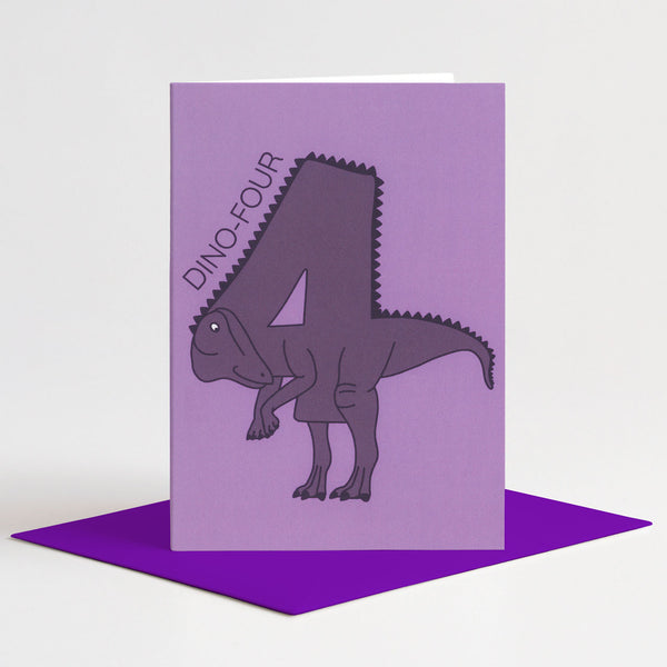 Dino-Four Age 4 Birthday Card illustrated by Charlotte at Dinosaurs Doing Stuff Featuring a Bactrosaurus, this card is sure to delight the average ...