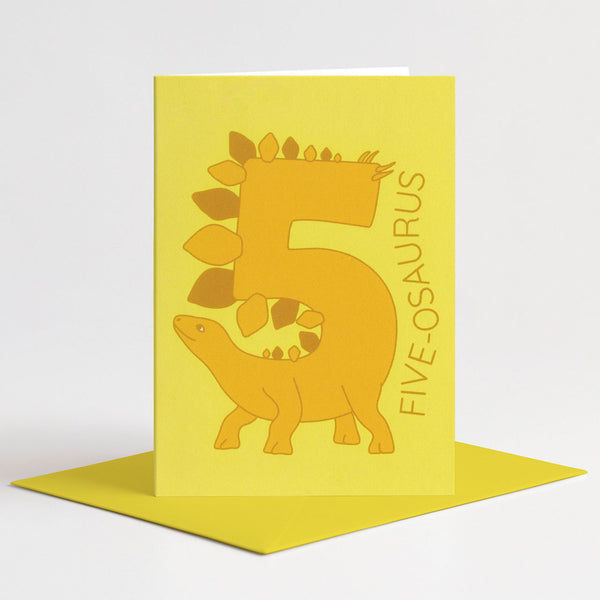 Five-Osaurus Age 5 Birthday Card illustrated by Charlotte at Dinosaurs Doing Stuff Featuring your favourite and mine, a Stegosaurus, this card is s...