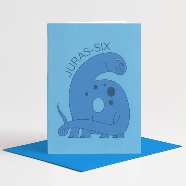 Juras-Six Age 6 Birthday Card illustrated by Charlotte at Dinosaurs Doing Stuff Featuring a happy Diplodocus, this card is sure to delight the dino...