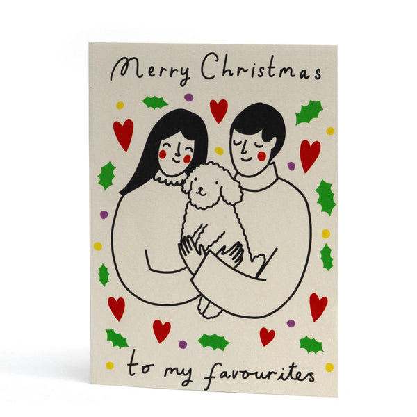 Favourites Dog Christmas Card - illustrated by Kitty Kenda Send your favourite human/dog thruple this funny, sweet Christmas card - our favourites ...