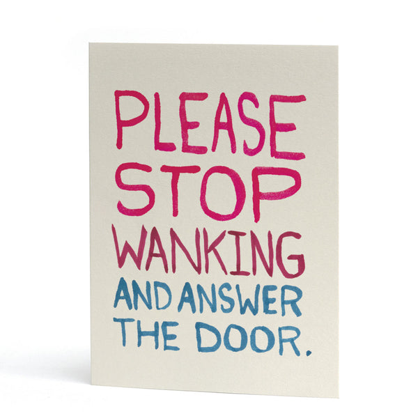 Answer The Door Wanking Card - illustrated by Claire Senior as part of the Experi-mental Pancake Zone Please stop wanking and answer the door. For ...