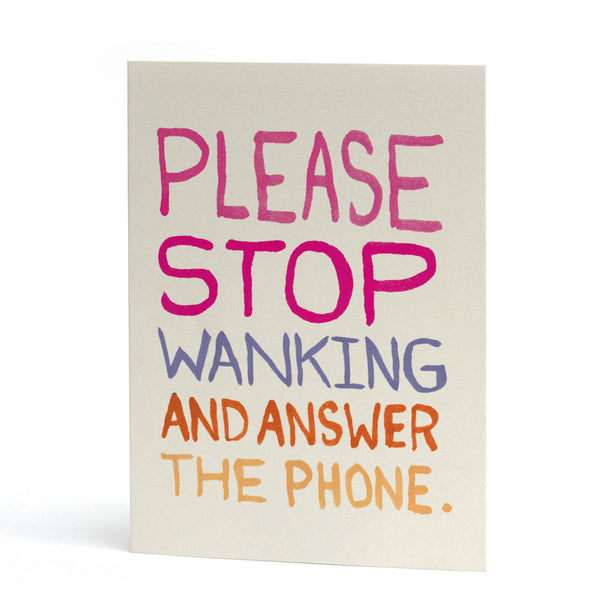 Answer The Phone Wanking Card - illustrated by Claire Senior as part of the Experi-mental Pancake Zone Please stop wanking and answer the phone. Fo...