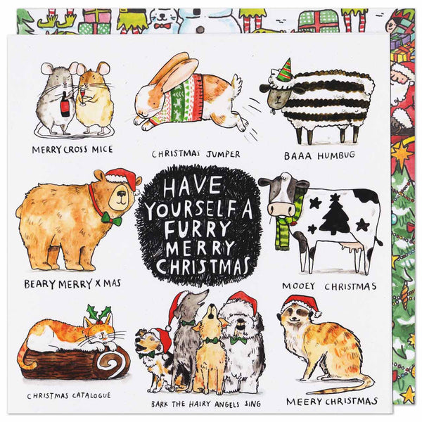 Have Yourself a Furry Merry Christmas Puns Card illustrated by Jelly Armchair Even though we can sometimes have a bit of a love/hate relationship w...