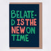 Belated is the New On Time Dark Greeting Card SALE - illustrated by Claire Senior
