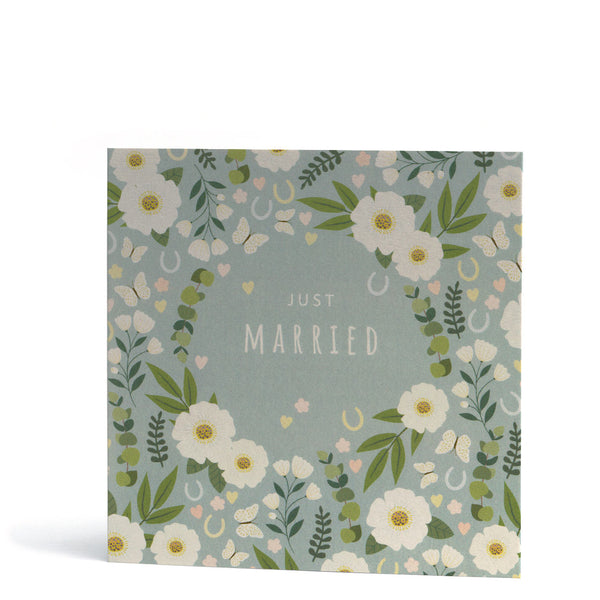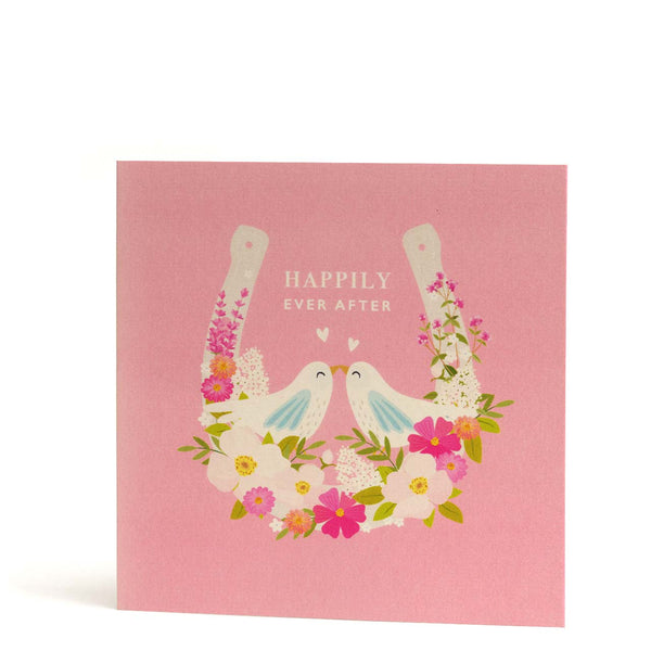 Happily Ever After Horseshoe Wedding Card - illustrated by Klara Hawkins Send this card to the newly wedded couple in your life - featuring two lov...