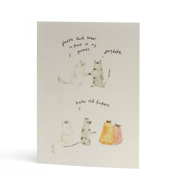 Don't Swear Greeting Card illustrated by Amber Fossey aka Zeppelinmoon, printed under license by Redback Cards "Please don't swear in front of my p...