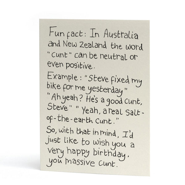 Massive Cunt Greeting Card - illustrated by Claire Senior It's fun learning about language, isn't it? How fascinating that, seemingly, the worst wo...