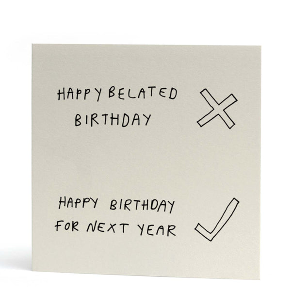 Next Year Belated Birthday Card - illustrated by Mr Will Vincent for Redback Cards Acknowledge that belated birthday wishes are a bit passé with th...