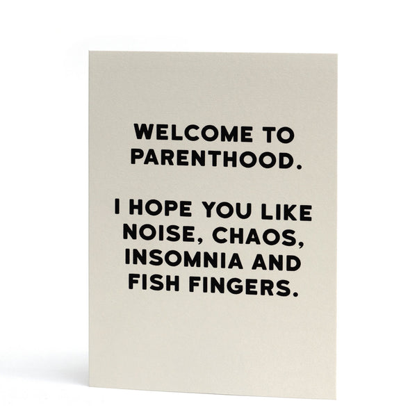 Parenthood Greeting Card - created by Holy Flaps for Redback Cards "Welcome to Parenthood. I hope you like noise, chaos, insomnia and fish fingers....