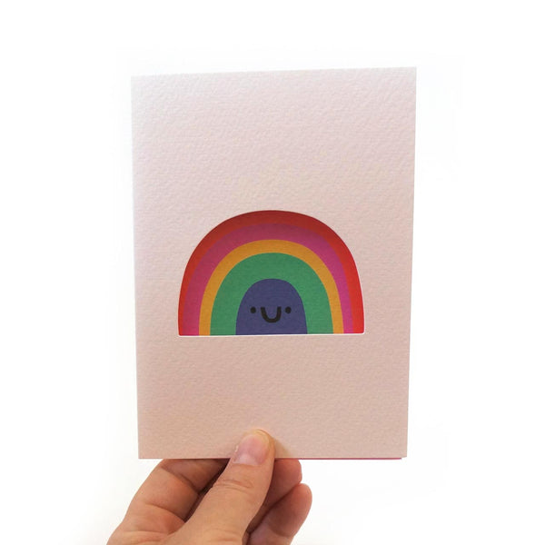 Rainbow Die Cut Card - illustrated by Rumble Cards There's no joyful event that can't be improved by receiving a greeting card with a gosh-darn rai...