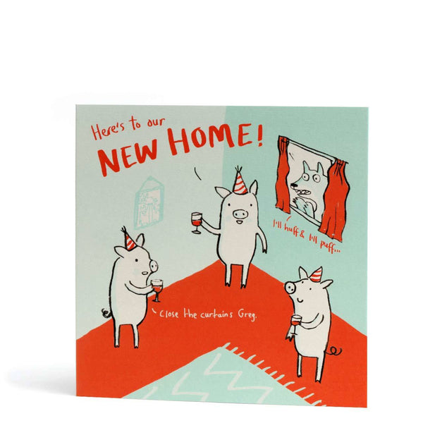 Pigs New Home Greeting Card - illustrated by Sarah Ray The three little pigs celebrate their house move, but who's peering in the window? A fun and...