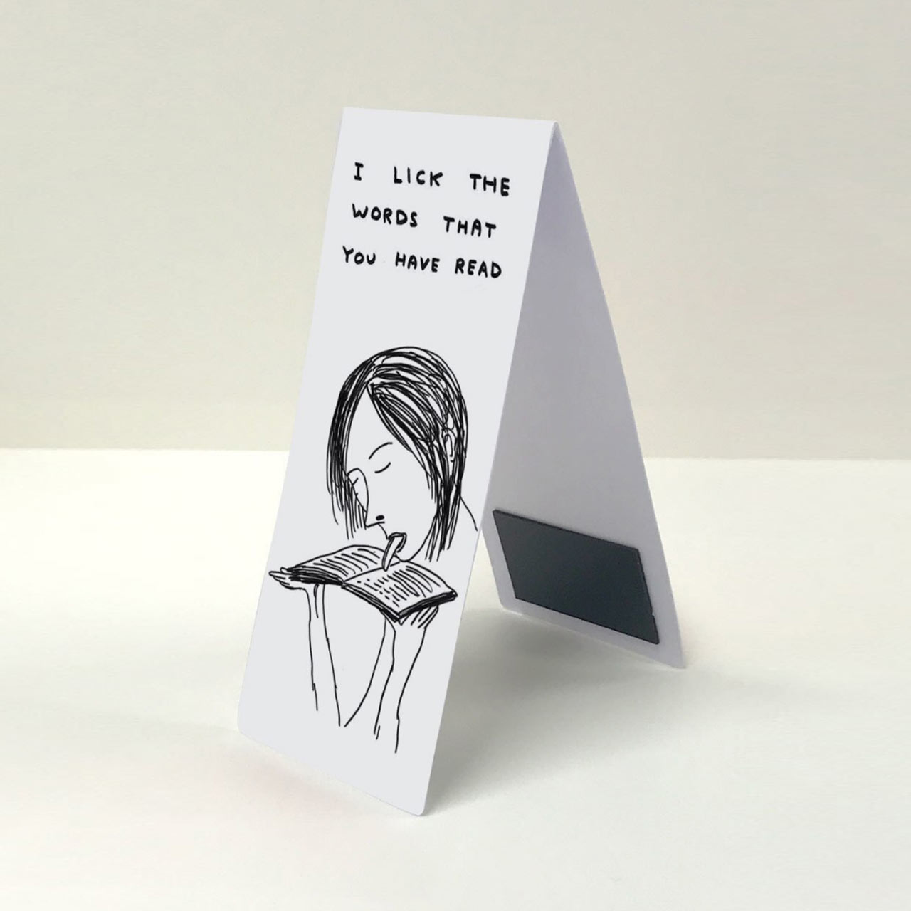 As far as cardboard magnetic bookmarks go, this one we have by David Shrigley is quite definitely the creepiest! Bearing the legend "I Lick The Words That You Have Read" it's a perfect gift for that person you know who likes to keep their books pristine and... er... unlicked!