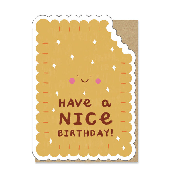 Nice Biscuit Die Cut Birthday Card - illustrated by Marylou Chalon for Stormy KnightHave a NICE birthday says this happy Nice biscuit. It's still b...