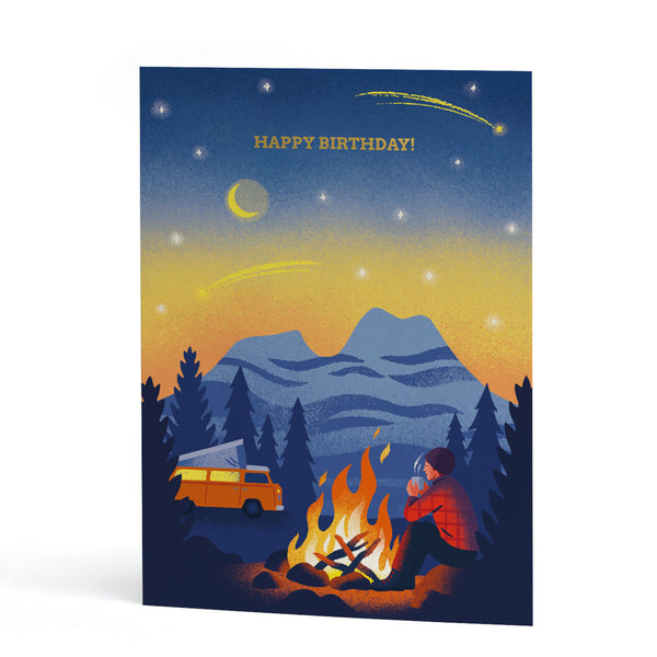 Under The Stars Gold Foil Birthday Card - illustrated by Lucy Davey for Stormy KnightSome of us love nothing better than going off grid for the wee...