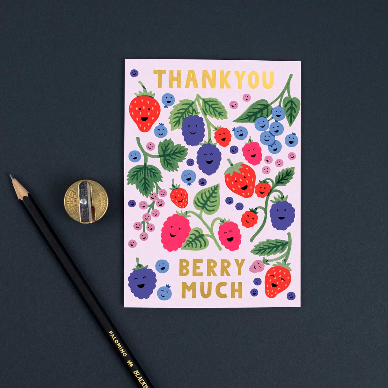 Send berry-loads of thanks with this super cute, gold foil accented thank you card illustrated by Holly Maguire for Stormy Knight. We love a good pun-net of happy fruit here at PancakeHQ!