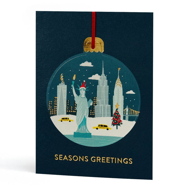 New York In The Snow Gold Foil Bauble Greeting Card - illustrated by Stormy KnightThis fantastic card-and-gift-in-one features a gold foil bauble t...