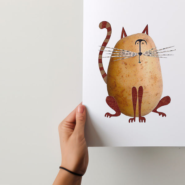 Potato Cat A4 Art Print - illustrated by Claire Senior Potato Cat is just big-boned... isn't he? This fun illustration, based on the owner's massiv...