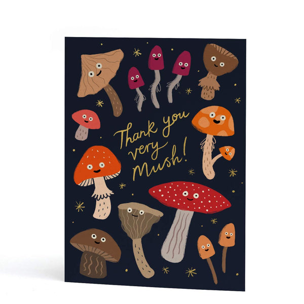 Thank You Very Mush Gold Foil Card - illustrated by Sarah Jackson of Stormy KnightSend your thanks with this sweet and funny mushroom-inspired than...