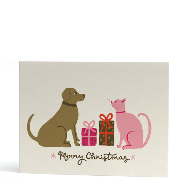 Smudge and Pink Kitty Merry Christmas Card - illustrated by Jade Fisher The dog and cat got each other gifts! Either that or they've both claimed a...