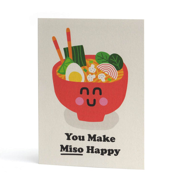 You Make Miso Happy Card illustrated by Studio Boketto You make MISO happy, exclaims this pun-tastic bowl of miso-based noodly awesomeness! Send th...