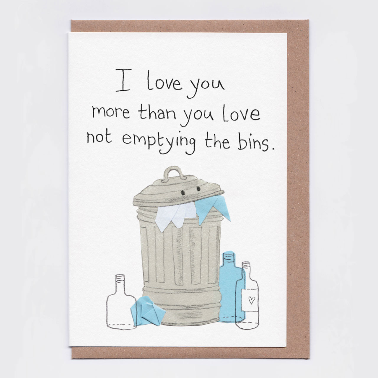 Emptying The Bins Love Card - illustrated by Claire Senior at The Curious Pancake