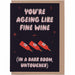 On the surface of things, aging like a fine wine sounds like a delicious compliment. You're getting older, better, more complex, more expensive! Betiobca here, well, she has a different point of view! Ageing like a fine wine means you're being left, in a dark room, untouched! Get this funny birthday card for a friend or family member who will appreciate this gentle ribbing!