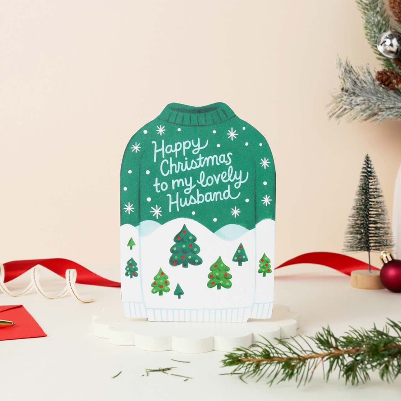 Happy Christmas Lovely Husband Jumper Die Cut Card - Illustrated by Jacqui Lee for Ricicle Cards