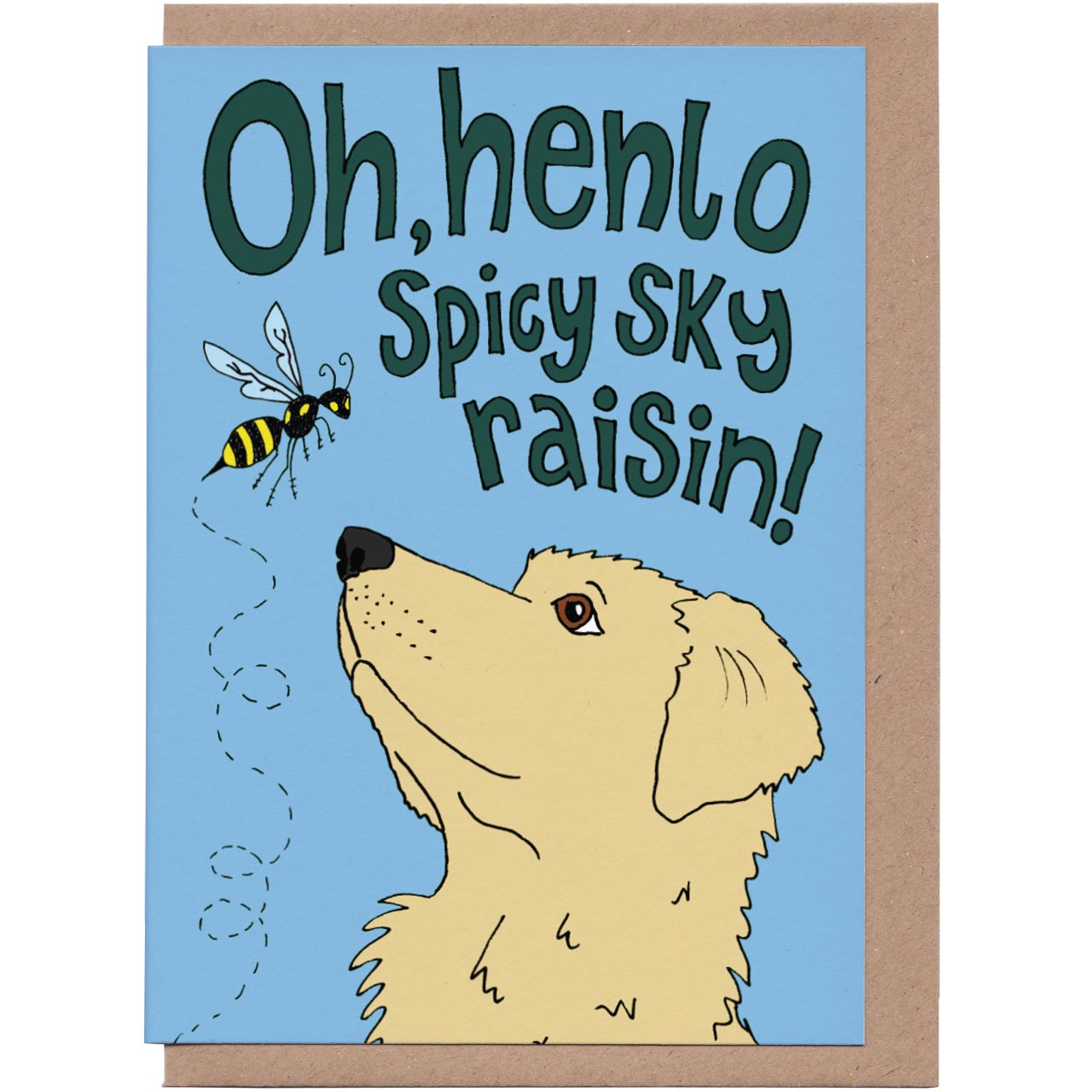 Henlo Spicy Sky Raisin Greeting Card - illustrated by Claire Senior
